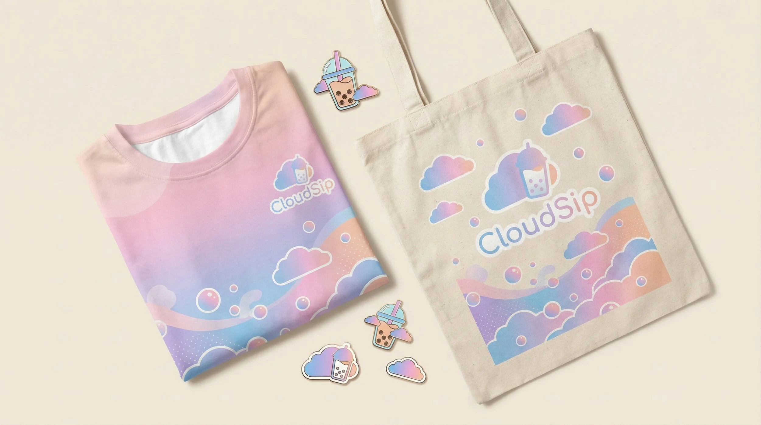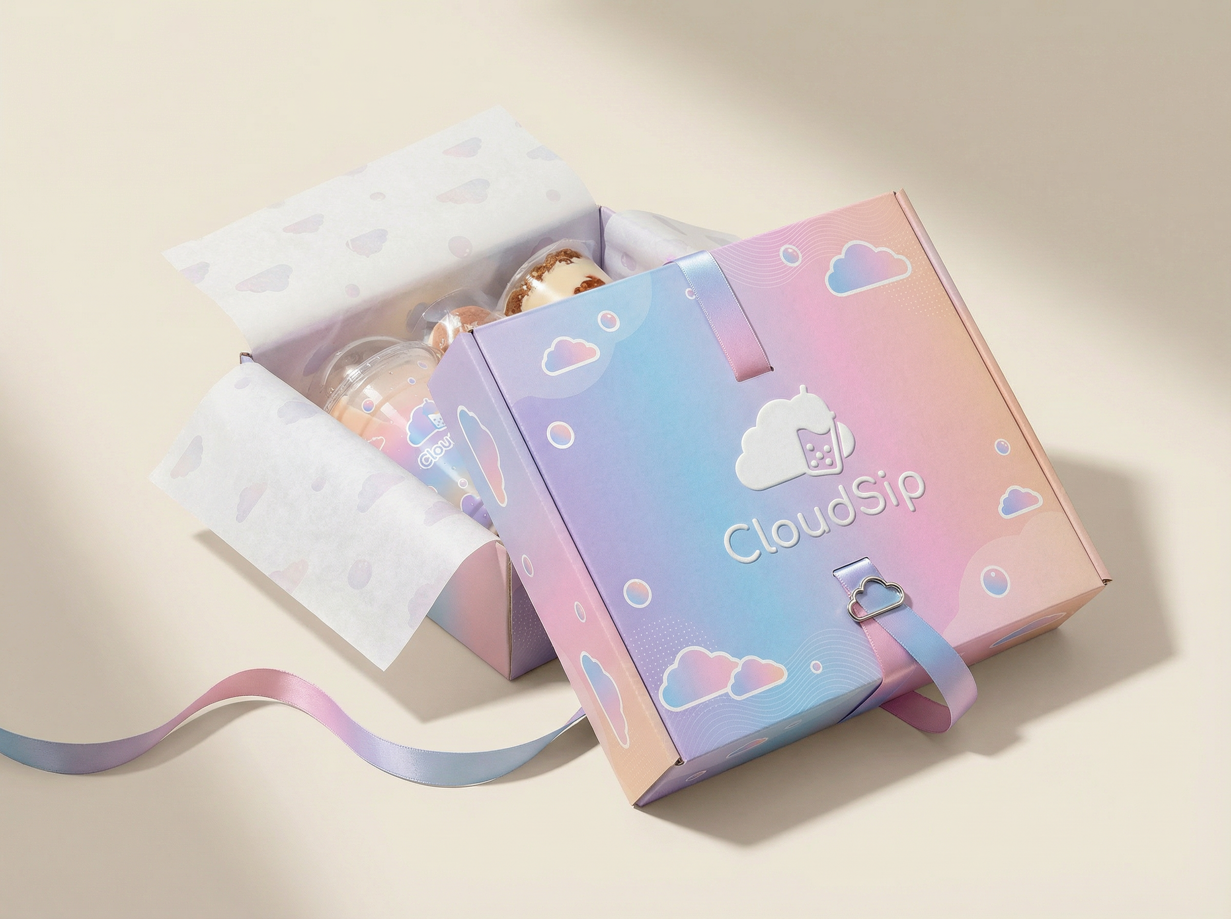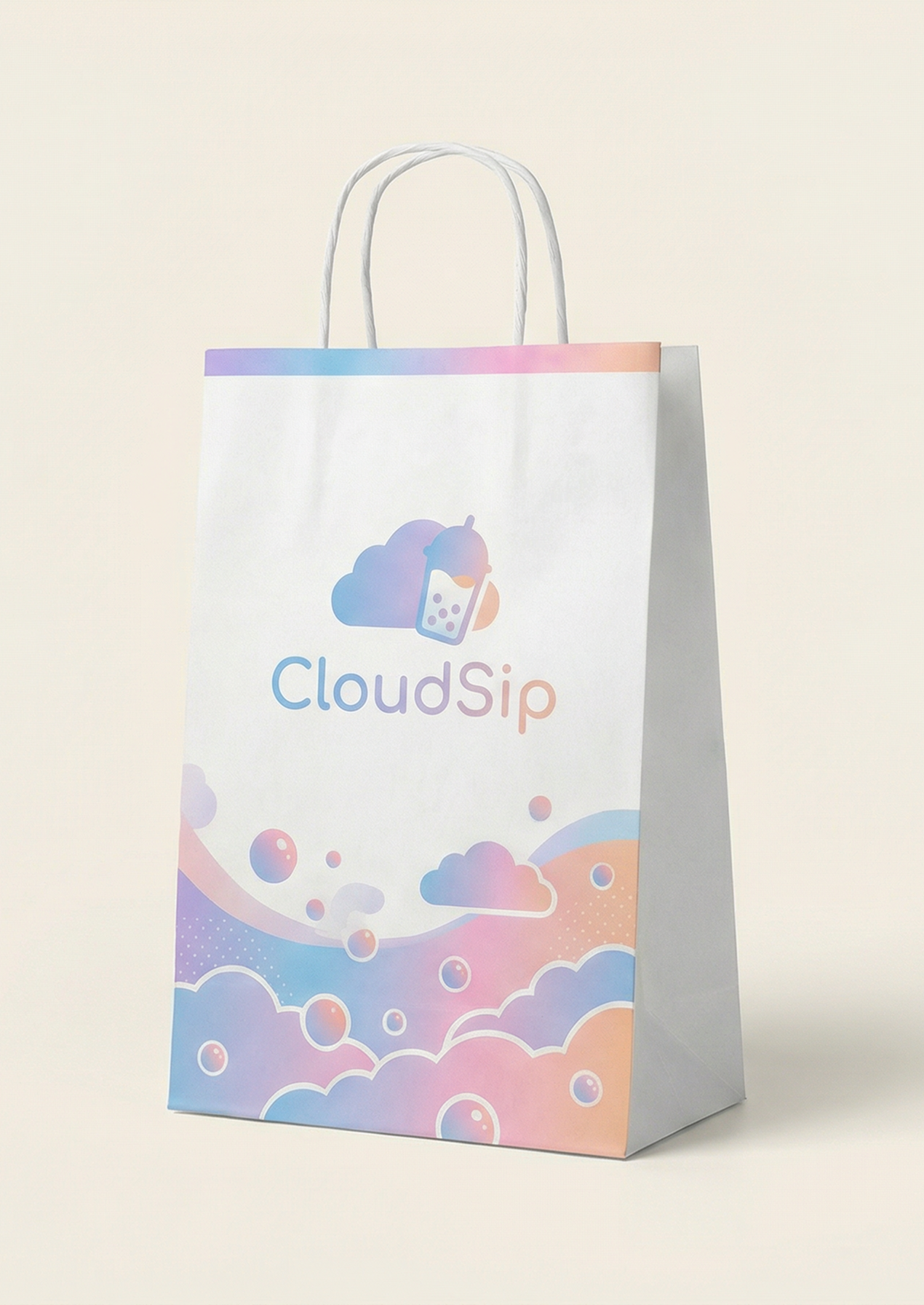 The packaging for CloudSip uses soft pastel gradients to reflect the brand’s light and airy identity. I incorporated smooth color transitions inspired by the sky to create a gentle, dreamy visual effect across cups and packaging.