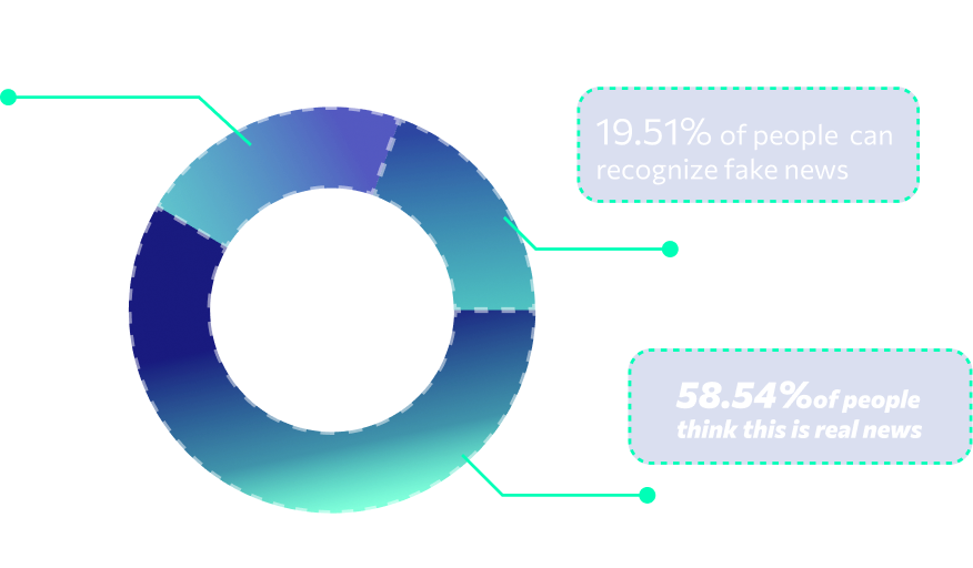 Most of the participants in the questionnaire were intellectuals with bachelor's degrees or higher, and more than 50% of them were very confident in their ability to recognize fake news from artificial intelligence. So we ran a series of tests. It turns out only 19.51% of them can correctly recognize fake news generated by AI.