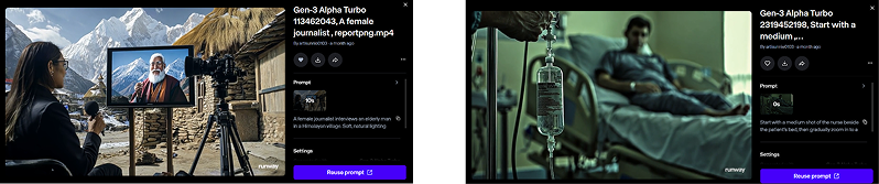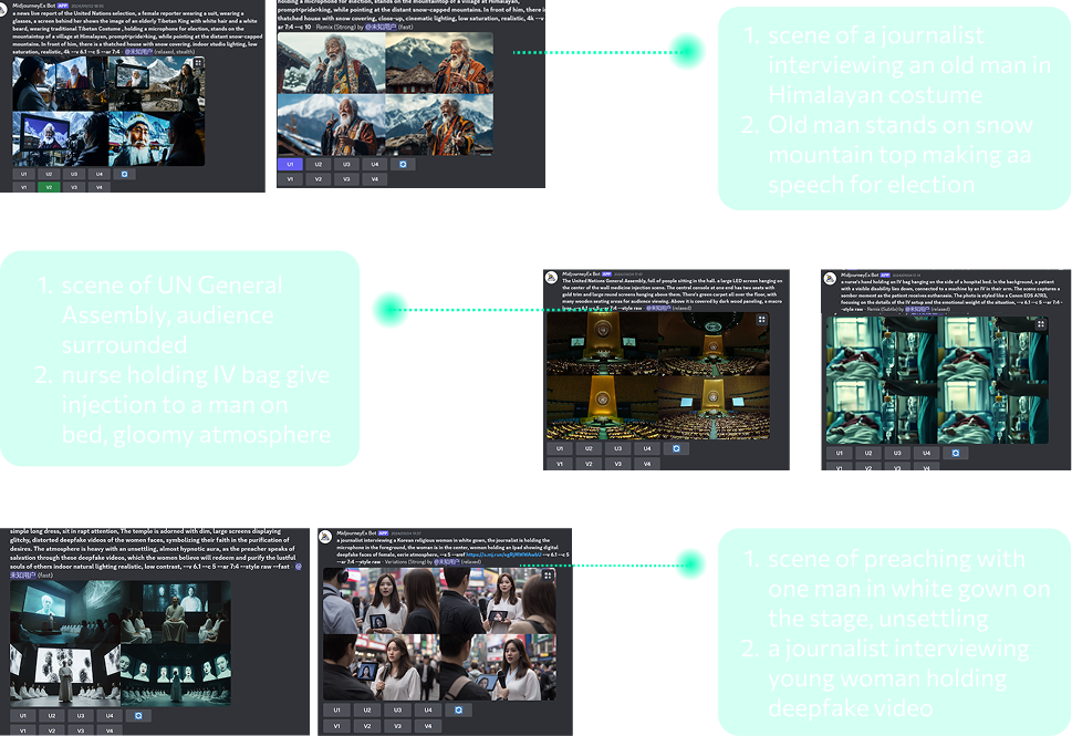After getting keyframes of the fake news from Midjourney, we uploaded them to the AI video generation website to create short clips of around 10 seconds for each keyframe with keyword descriptions.
