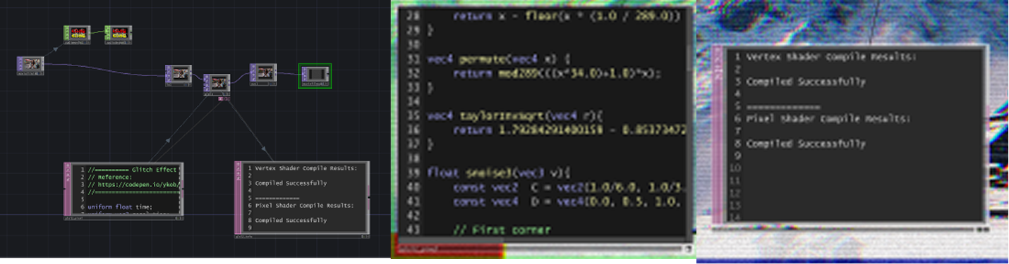 I use TouchDesigner to create layered glitch visuals by manipulating a single image with noise-driven switches, color ramps, and displacement effects. The image is duplicated and offset using transform, HSV adjust, and feedback to produce overlapping motion, then composited and refined. A shader using 3D simplex noise animates UV coordinates and samples textures to generate a dynamic glitching color effect.