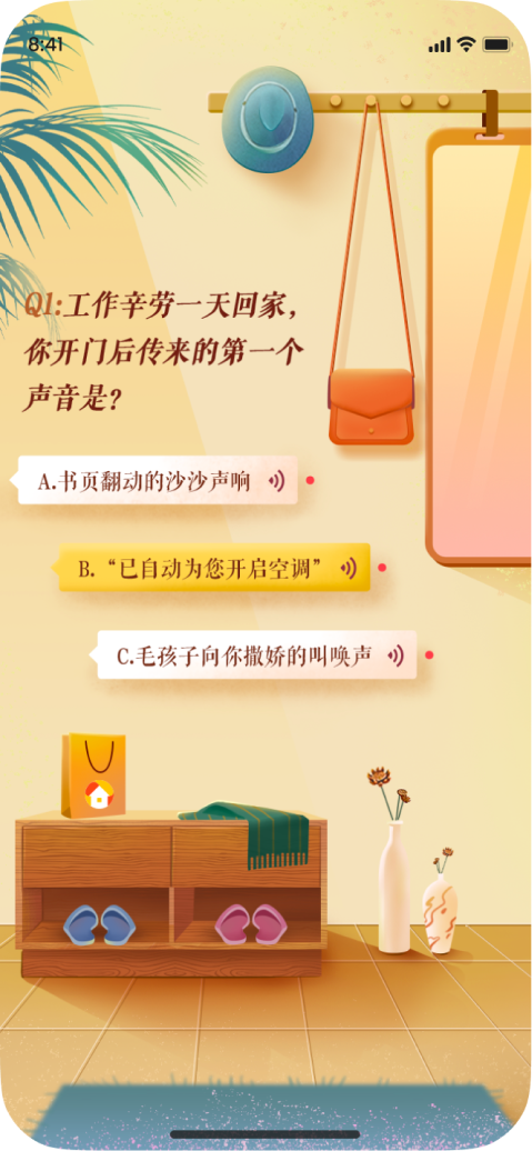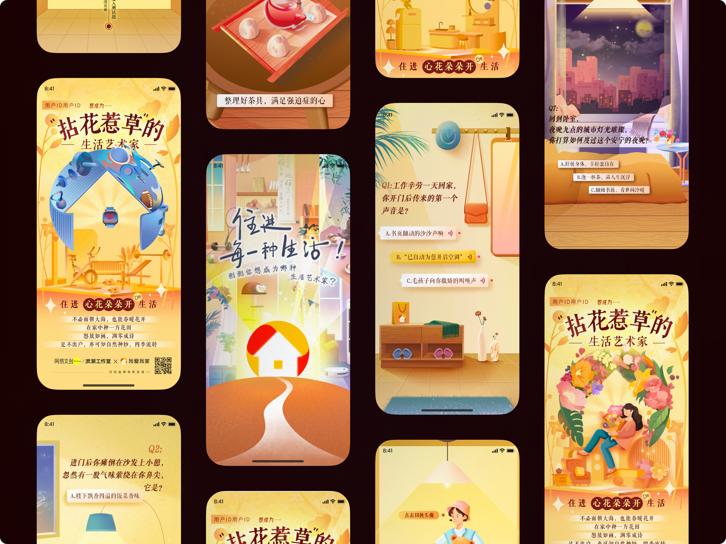 The experience strategy was translated into high-fidelity H5 screens supported by a custom illustration system. Motion elements were designed to enhance interaction feedback while maintaining readability on mobile devices. Illustrations were used to represent different lifestyle categories, creating a warmer and more relatable brand image.
