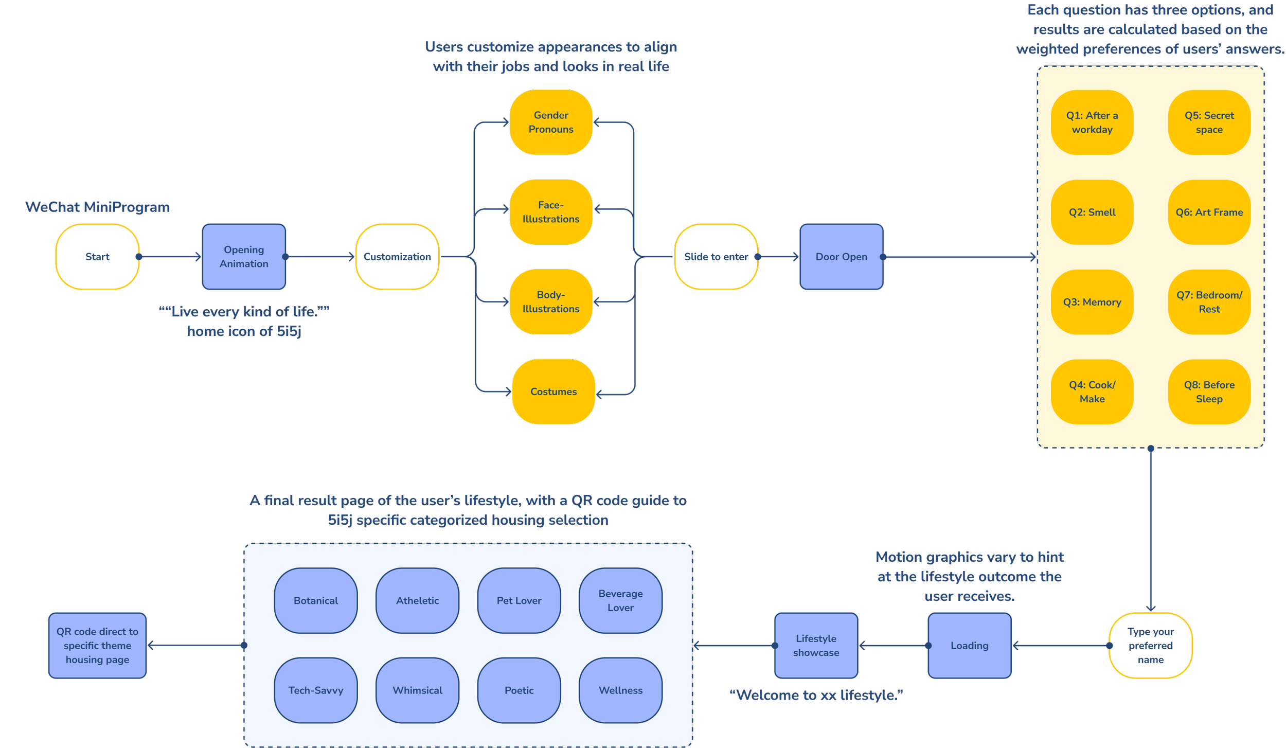 Developed at NetEase for 5i5j Real Estate, this HTML5 mobile experience is an interactive lifestyle quiz. Featuring customizable illustrated avatars and eight distinct lifestyle profiles, it engages Gen Z users in a playful way while helping the client efficiently gather insights into young customers’ housing preferences.